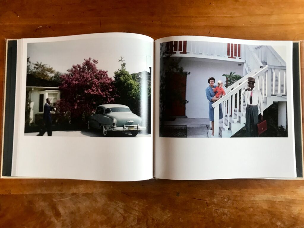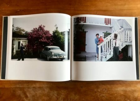 Shulman’s slides may be dated, but this book is cutting edge. Technically speaking it’s a modern marvel. Diop’s poses are precisely lit, choreographed, toned, and sized. As thespian roles they’re as carefully orchestrated as Cindy Sherman’s Untitled Film Stills. But with digital collage Diop takes them one step further. New and old shadows, costumes, props, and colorcasts blend seamlessly, even down to material flaws. Pixel peepers may find small discontinuities here and there, but only with effort. Most are perfect. A transcribed conversation with Diop and Shulman details the methodology. Suffice to say it’s the paramount of blending technique, and it makes Being There quite contemporary. Such montages would have been a practical challenge 10 or even 5 years ago.